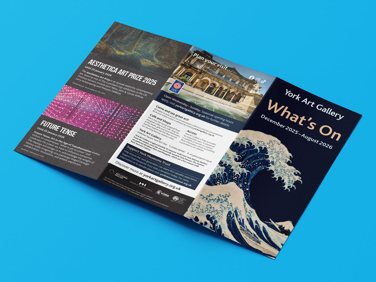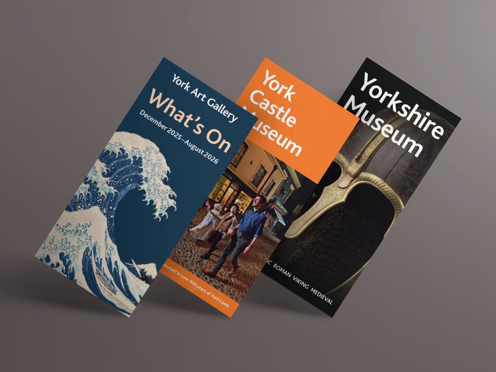 Design of promotional leaflets for York Art Gallery, York Castle Museum and Yorkshire Museum.